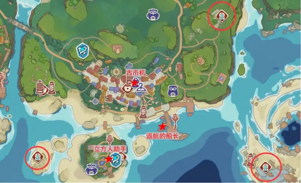 开局附近有三个遗迹,每个遗迹内都可以找到游戏币。将三个遗迹的游戏币全部收集完毕。