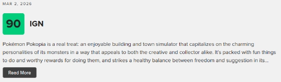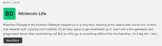 《宝可梦:pokopia》Switch2 M站媒体评分