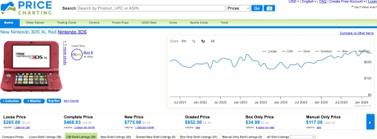 对比二手市场,PriceCharting显示该主机裸机售价约265美元(约1800人民币),完整盒装版约468.83美元(约3200人民币);eBay今年3月数据显示,全新同款主机拍卖成交价363美元(约2500人民币),部分款式售价低至294.99美元(约2000人民币)。值得注意的是,GameStop出售的翻新机无包装盒,甚至可能缺少配套触控笔。