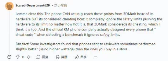 这位网友还提到,有部分厂商的部分送测机型有时会表现出略高于零售机的性能(例如使用更高功率进行跑分)。