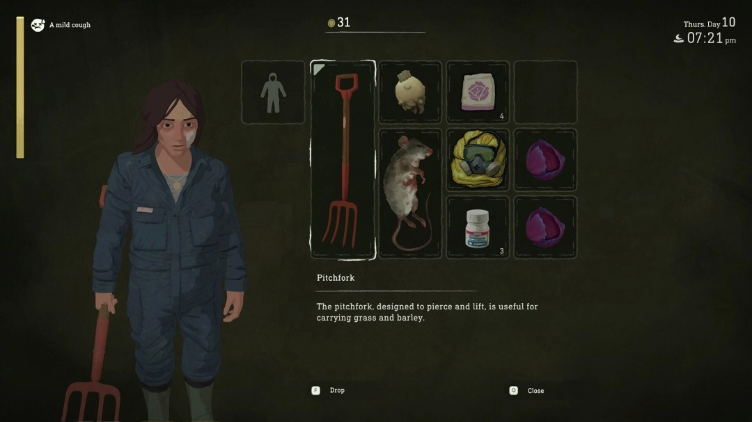 你的职责不止于翻土耕种。你为什么会被带到这里?小镇又为何与世隔绝?黄昏降临,是谁在暗影中窥视着你?调查与灌溉同等重要。你必须在田间苦劳与追寻真相之间取得平衡。每一次收获,或许能为村民多换一日生机,每揭开一个秘密,便让你离真相更近一步。