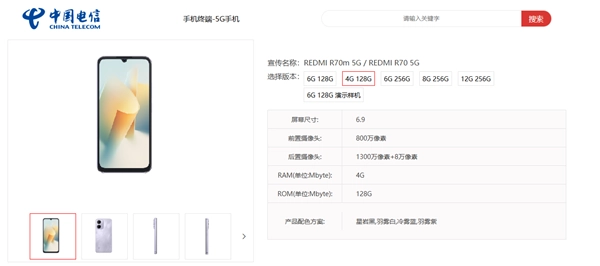 REDMI R70m 5G/R70 5G提供4GB+128GB、6GB+128GB、6GB+256GB、8GB+256GB、12GB+256GB多种版本可选,带来星岩黑、羽雾白、冷雾蓝、羽雾紫四款配色。
