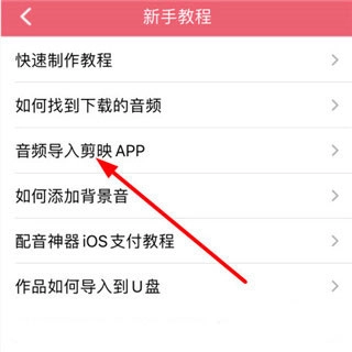 2、在教程列表中点击选择“音频导入剪映APP”选项。