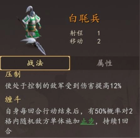2、刘备的白毦兵自带2范围内的止步效果,主公可搭配【落井下石】战法,以此概率震慑被止步的敌方目标。不过要注意,主公与刘备需保持相邻站位,不然【落井下石】攻击范围较短,可能无法覆盖到被止步的敌人。