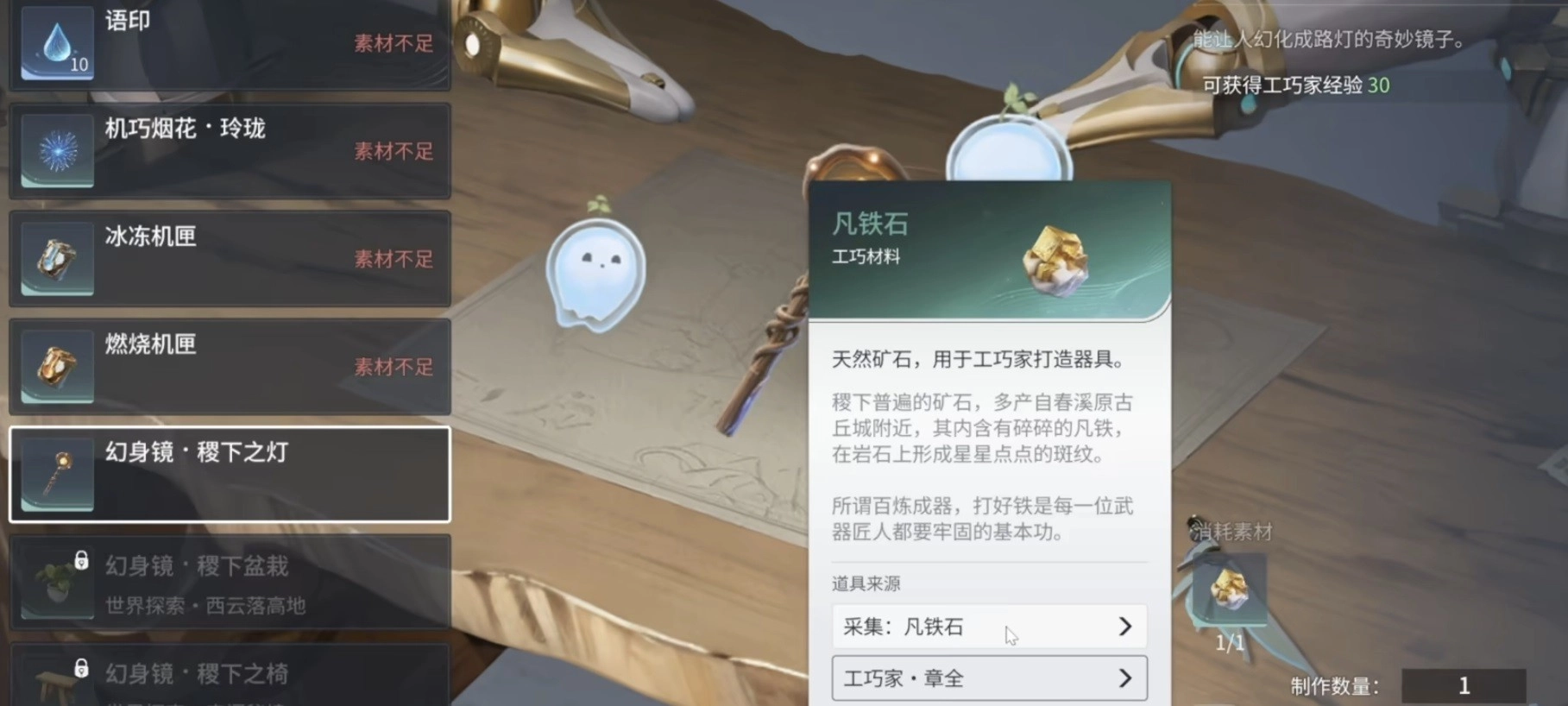 制作这些道具所需的材料,既可以通过野外挖掘铁矿、木材、晶石以及开启宝箱获取,也能依靠家园系统产出。这些资源在跑图时顺路就能采集,无需刻意花费大量时间去刷。游戏过程中建议优先提升到3级和8级,这两个等级会让跑图体验产生明显的质变。日常只需制作钩锁和滑翔翼即可,不必额外囤积材料。若搭配百草或垂钓玩法,三个生活职业就能形成自给自足的循环,是零氪玩家最理想的生存方案。