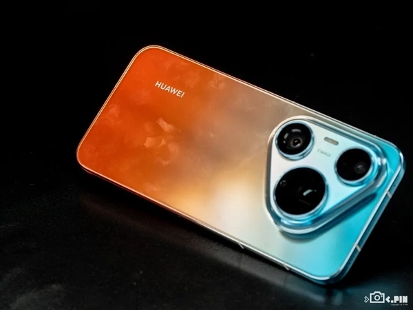 除了这个非常大胆吸睛的配色,机身背部依旧是沿袭自 Pura80 系列的三角形镜头模组,辨识度也直接拉满了。