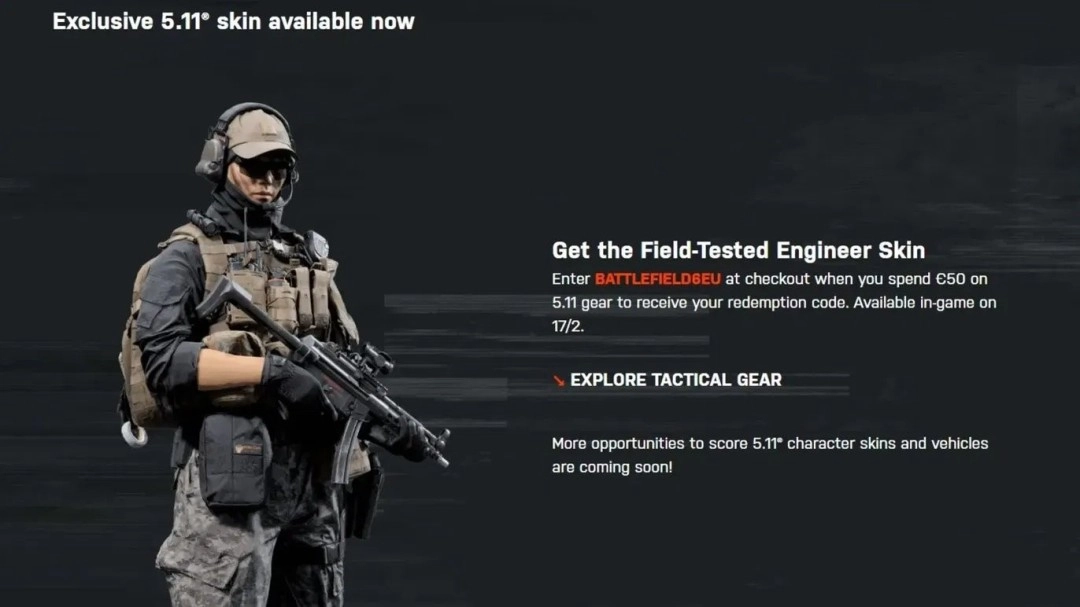 此次引发争议的核心,在于《战地6》和知名服装品牌“5.11”合作推出的四款全新皮肤。官方设计了一套价格不菲的解锁规则:玩家得在5.11官网下单,消费金额达到50美元,才能拿到一张兑换券——需要说明的是,这张券仅能解锁其中一款皮肤。而剩下的三款皮肤,则被单独组合成一个包,以16欧元的价格在游戏内进行售卖。这样的设置很快让玩家感到不满,不过还是有许多粉丝为了自己喜欢的皮肤愿意花钱购买。