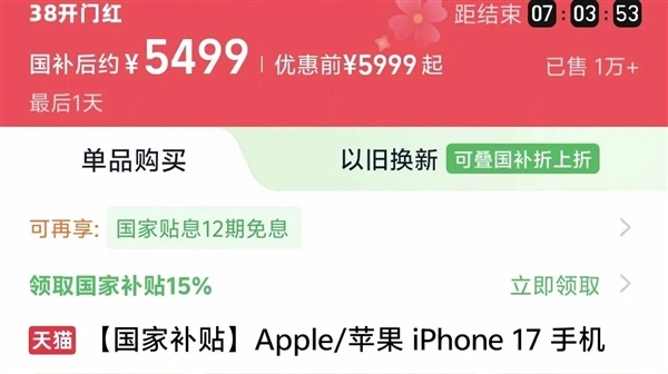 再加上 iPhone 17 标准版和国补这一套连招下来,17e的定价就显得很关键了。