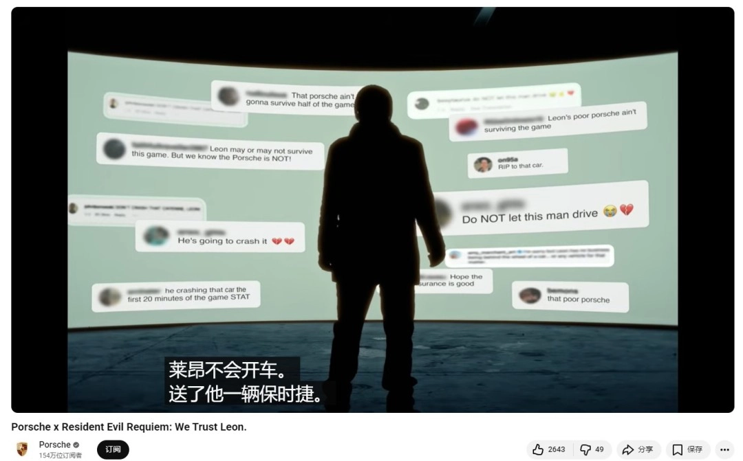 近日保时捷官方发布了《生化危机9》联名款保时捷卡宴Turbo GT的宣传视频,视频里有一个片段呈现出玩家们对这辆车命运的“担忧”,以及对里昂驾驶它的“心痛”。