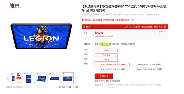 联想拯救者平板Y700五代正式官宣,3月18日发布,堪称安卓性能小钢炮!