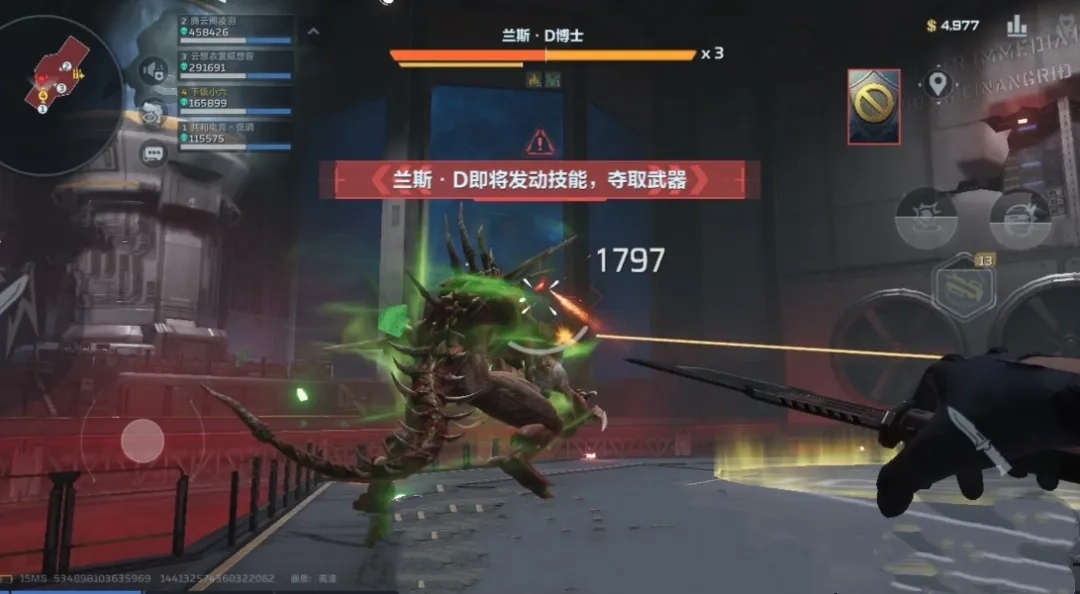 夺枪技能出现提示时,切换近战或乘风快递,武器掉落,技能结束后拾取,期间用乘风快递火环补伤。
