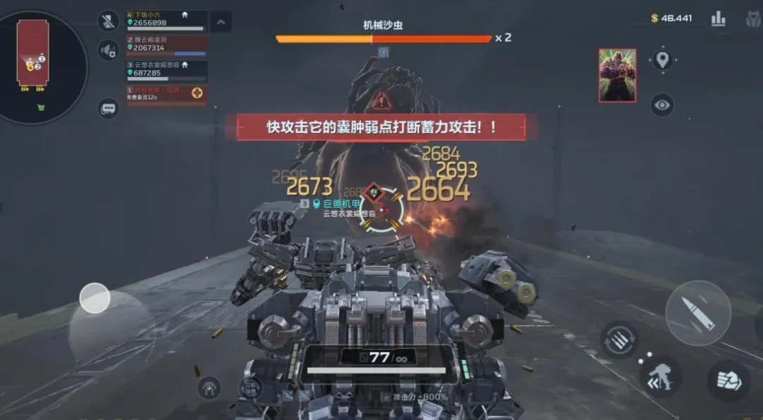 释放毒液前会蓄力,提示攻击颈部打断,观察伤害颜色判断位置,颈部为弱点伤害黄色,躲避不及可反方向机甲冲刺硬闯。