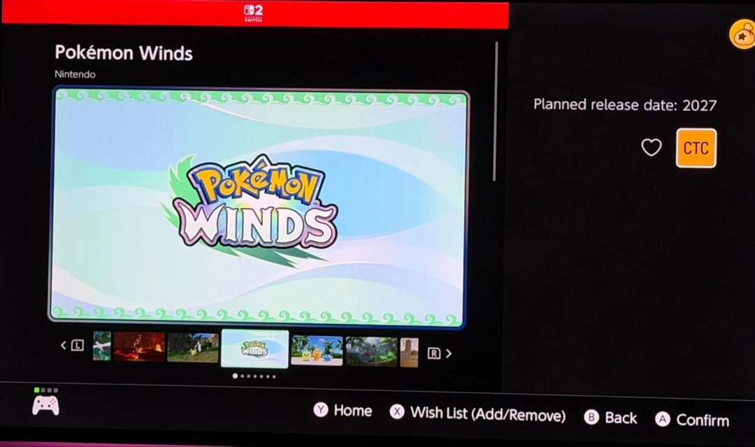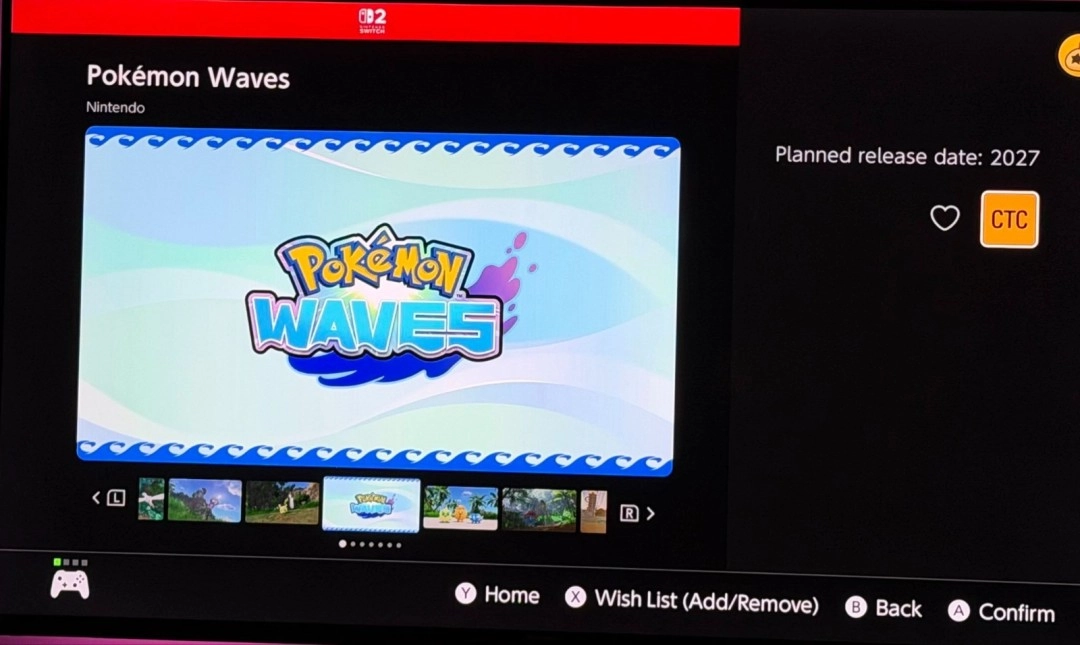 据多个地区玩家反映,欧盟(像英国)等地的Nintendo eShop最近已抢先上线《宝可梦风》和《宝可梦波》的商店页面。拿英国eShop来说,《宝可梦 波》页面清楚标明“2027年登陆Switch2”,还开启了添加心愿单的功能。