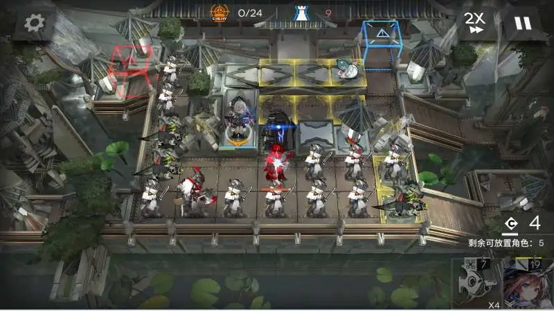 普通关卡可电弧二技能单人无藏无漏,开局显示符行走路线,电弧部署在安全高台最左边朝左,部署召唤物朝上、朝左清反伤怪,之后无脑开技能部署召唤物,无藏要对轴。