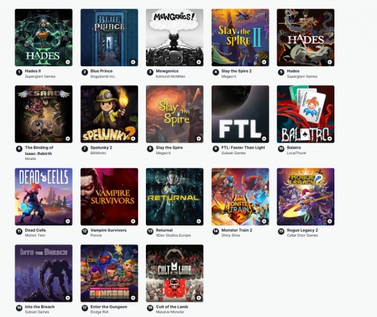 IGN发布最佳肉鸽游戏排名!《以撒》《杀戮尖塔2》遗憾落榜前三