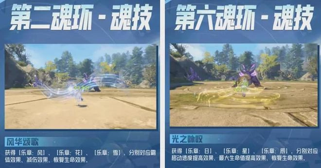 2魂技可获得风、花、雪乐章,6魂技可获得日、星、辰乐章,乐章数量影响1奥义辅助增伤比例,唐月华应先使用魂技再释放奥义。同时,缺失的乐章可能在年份效果中。