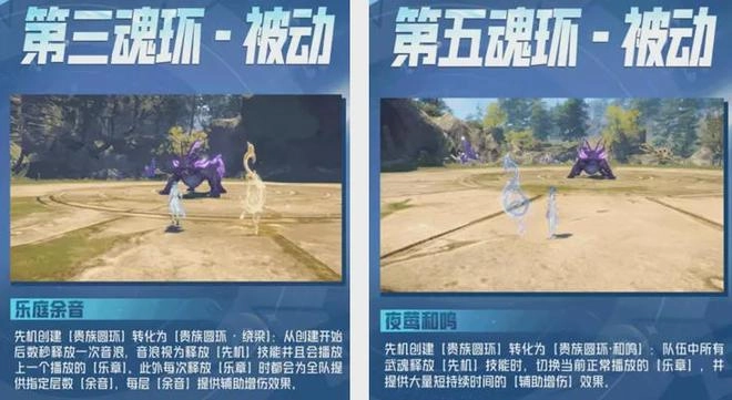 3被动对应绕梁领域,通过叠加“余音”状态提升辅助增伤数值;5被动对应和鸣领域,可一次性提供大量且持续短时间的辅助增伤。