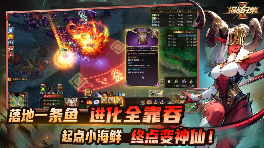在操作体验上,英雄进化打破上限,玩家可通过羁绊收集不断完成吞噬进化,配合优化后的羁绊抽卡机制,实现抽卡不占格子的无限吞噬效果,不占格子的流畅体验让玩家无需分心操作,专注享受战力秒肥、一路飙升的爽感。