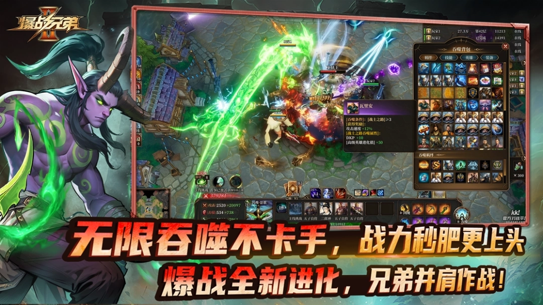 作为KK官方对战平台爆款地图的全新续作,《爆战兄弟2》在玩法设计、场景搭建、操作体验上完成全方位焕新,可玩性再攀新高,多重升级精准击中玩家的游戏需求。近乎无限的羁绊组合让玩家每一局都能构建全新游戏策略,充分满足对随机性和指数成长的双重游戏渴望;玩家能够自由选择英雄进化路线,通过羁绊收集实现英雄的无限吞噬进化,让战力成长拥有无边界的可能。