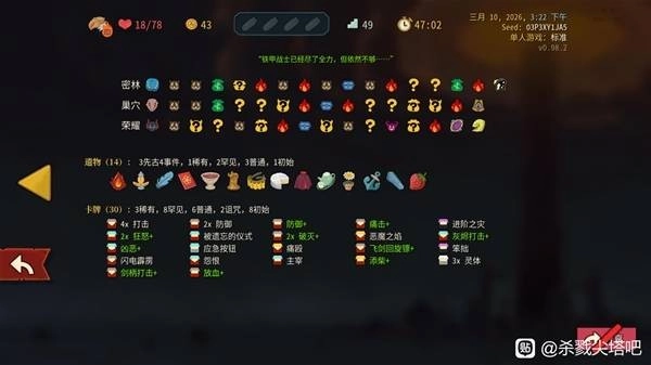说一下路线,多走问号和火堆,道中血量尽量保持在70%以上,低了就可以坐火堆睡觉,问号敲牌删牌事件也不少,不要因为火堆贪敲道中暴毙。