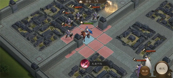 2、第一回合张辽移动到下图位置开技能无坚不陷攻击敌人。