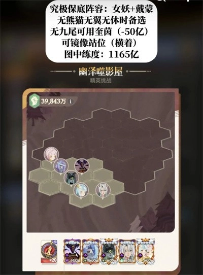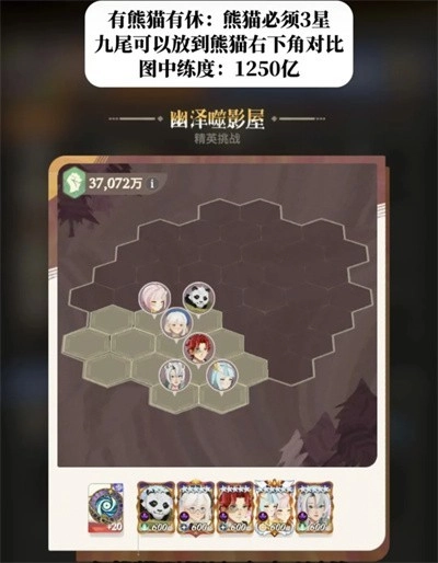 7、这套阵容是为没有熊猫、翼和休的玩家准备的备选方案。图里用的是九尾,要是没有九尾的话可以换成奎茵,伤害大概会减少50亿左右。