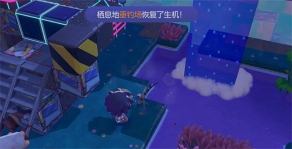 激活确认:当摆放位置正确时,场地会呈现蓝色水波与钓鱼特效,并显示栖息地名称「海钓场」。