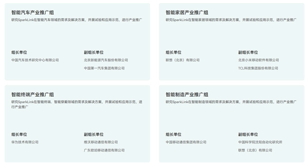智能终端产业推广组由华为、vivo、OPPO组成,主要职责研究SparkLink在智能终端、智能穿戴领域的需求及解决方案,开展试验和应用示范,进行产业推广。