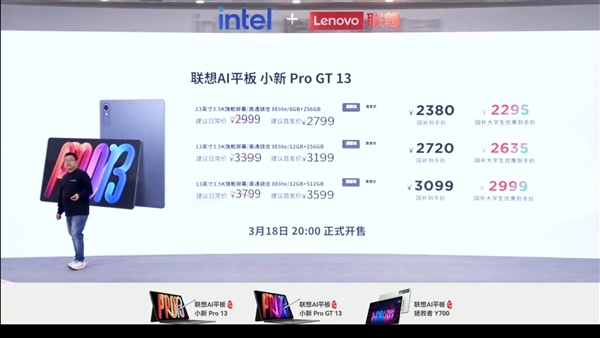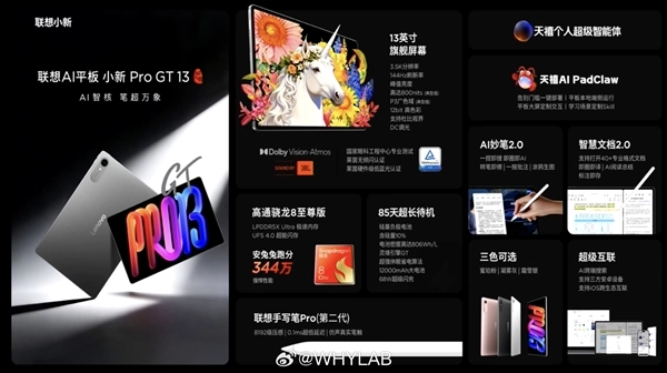 联想小新Pro 13/Pro GT 13新品发布:13英寸高性价比平板 1870元起