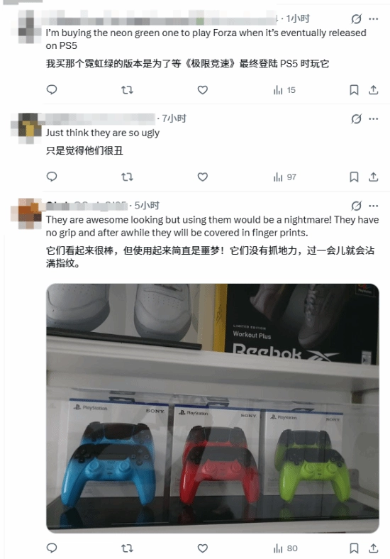 这款手柄采用渐变撞色设计,搭配高光亮面外壳,视觉上极具潮流感,不少玩家被其颜值吸引,纷纷留言 “想要一个”“我已经入手了”,还有玩家表示打算购入霓虹绿款,为未来 PS5 版《极限竞速》做准备。