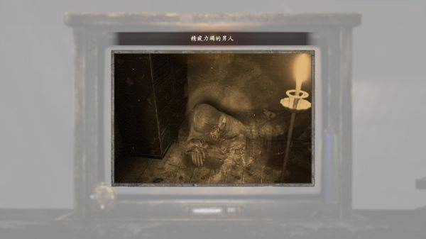 6、集齐四份文件后,前往【黑泽家大厅】,在西北侧有一个可以拍照打开的密道,里面可以拍照看见精疲力尽的男人,并捡到【沾有血迹的纸条】、【沾有血渍的戒指】