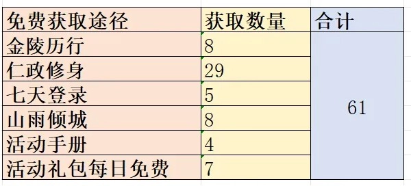 活动周期内,可免费获得61个祈宁香,具体如下: