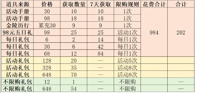 以下为氪金获取途径,除不限购礼包外,最多可获得202个祈宁香。