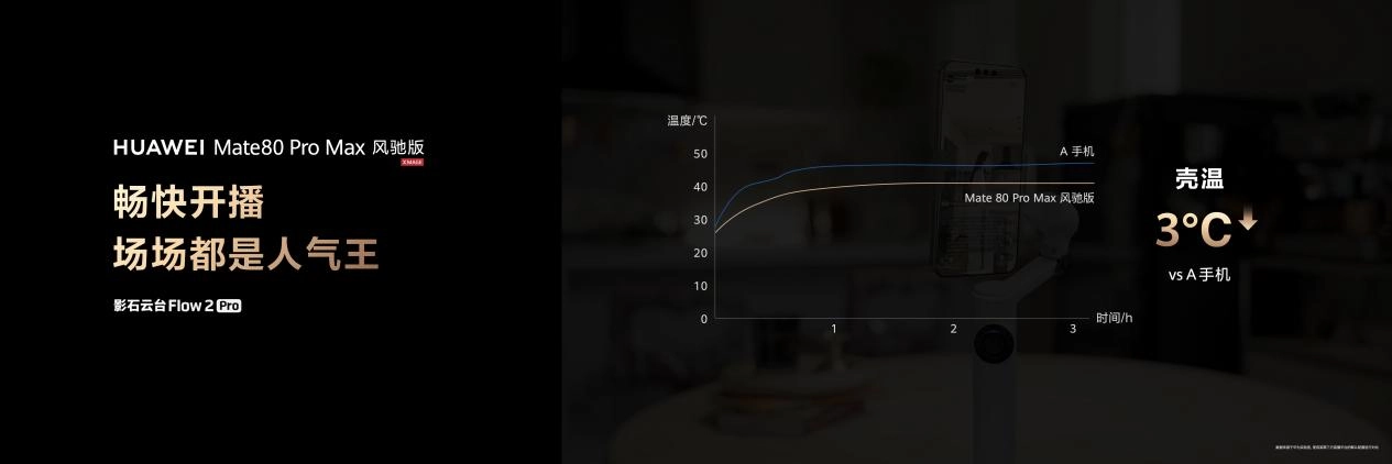 当然,主动风冷散热方案不仅全面提升游戏体验,在影像拍摄上的表现也十分出彩。当下很多旗舰在长时间录制高规格视频时常常会因为发热导致录制停止。华为Mate 80 Pro Max 风驰版则完全无需担心,长时间录像帧帧流畅不发烫,既保证了录制时间,还保证了握持舒适度。