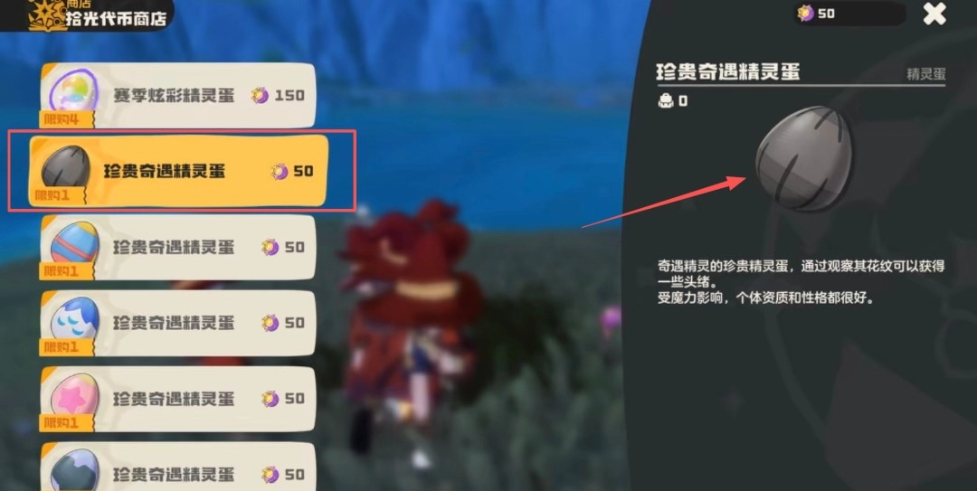 等到凑齐50个代币后,就可以在拾光代币商店购买珍贵奇遇精灵蛋,并且不用担心孵化问题,这个蛋孵化时间很短